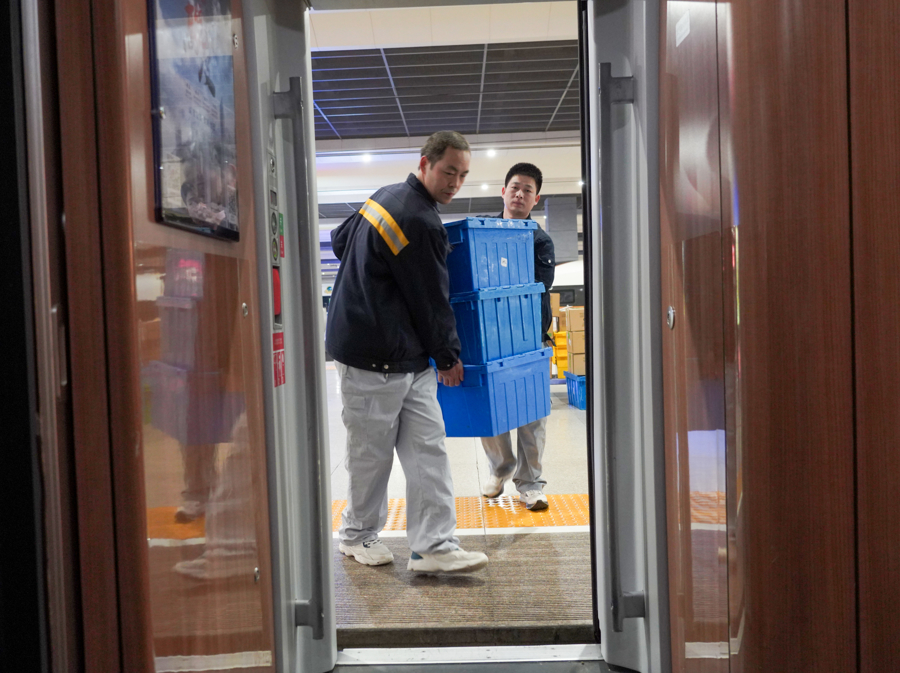 今年春运,长三角铁路客流量连创新高,虹桥站日均开行列车数百趟,餐车商品补给需求持续攀升。马炯和马壮壮的配送节奏,也随着这份需求变得更加紧凑。
